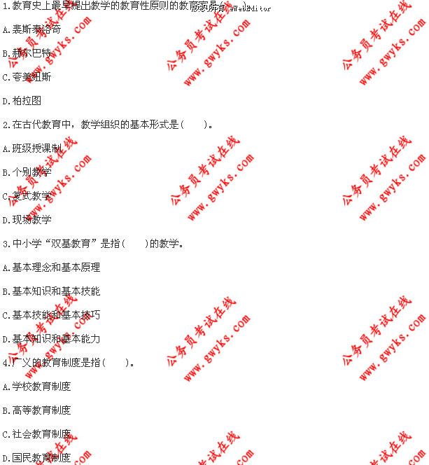 10.我不承認(rèn)有任何“無教育的教學(xué)”,“教學(xué)如果沒有進(jìn)行道德教育,只是一種沒有目的的手段”。赫爾巴特的這一言論表明了德育應(yīng)該具有( )功能。