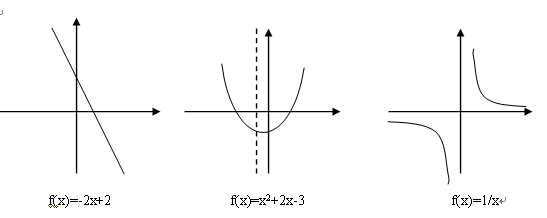 [學生活動]對于(1),學生容易看出:氣溫圖中分別有兩個單調減區(qū)間和一個單調增區(qū)間.對于(2),學生容易舉出具體函數(shù)如:f(x)=-2x+2,f(x)=x2+2x-3,f(x)=1/x,并畫出函數(shù)的草圖,根據(jù)函數(shù)的圖象說出函數(shù)的單調區(qū)間.