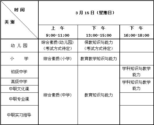 二、2015年上半年中小學(xué)教師資格考試筆試時(shí)間安排表