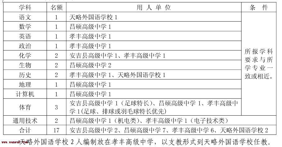 3、招聘工作接受縣監(jiān)察局監(jiān)督。畢業(yè)生可登陸安吉教育網(wǎng)(www.ajedu.com)或安吉人才網(wǎng)(www.ajrsrc.com)查詢。咨詢電話:安吉縣高級(jí)中學(xué):0572-5306009(陳老師);昌碩高級(jí)中學(xué):0572-5228888(謝老師);孝豐高級(jí)中學(xué):0572-5051235(陳老師);天略外國語學(xué)校:0572-5230333(顏老師);安吉縣教育局組織人事科:0572-5123434(黃老師);安吉縣人力資源和社會(huì)保障局人力資源開發(fā)管理科:0572-5123457。