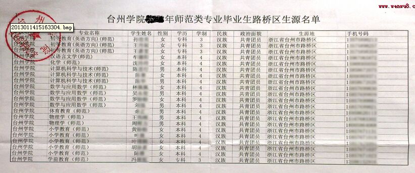 畢業(yè)生名冊(cè)寄送地址:路橋區(qū)教育局人監(jiān)科(路橋區(qū)政府大樓329房間),聯(lián)系電話:0576—89210976。
