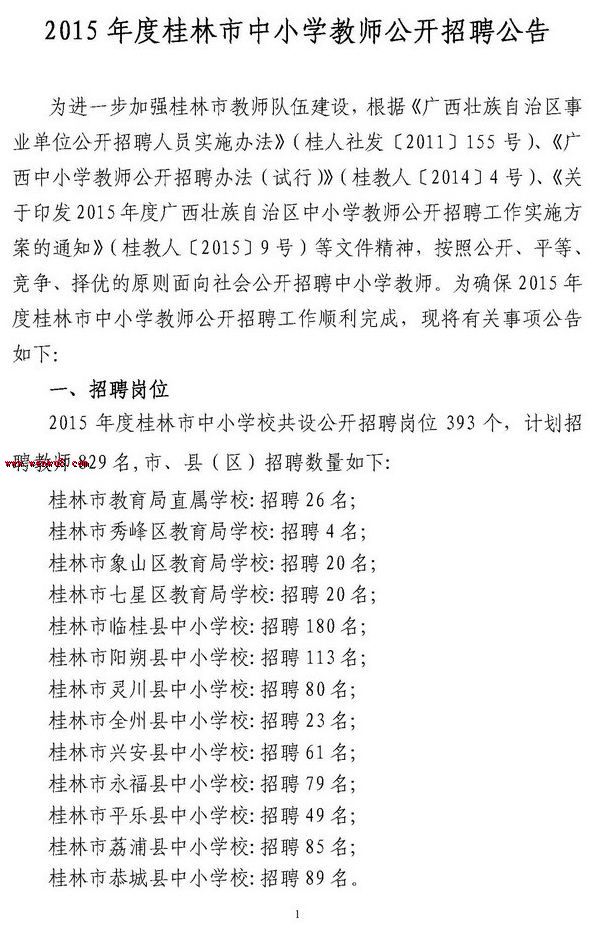 附件二:桂林市2015年公開招聘中小學(xué)教師崗位匯總.rar