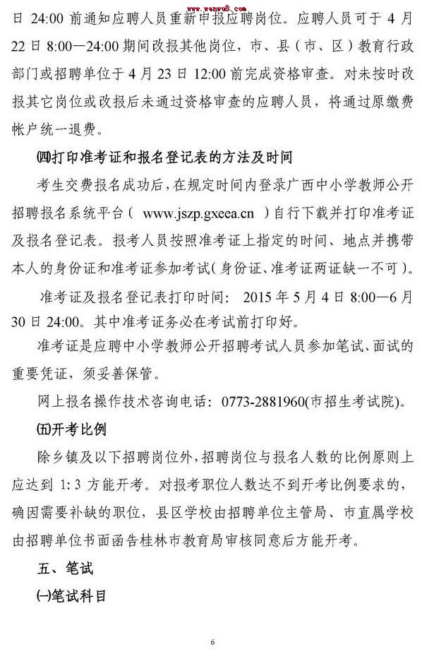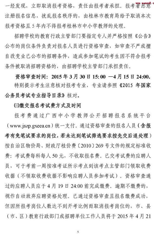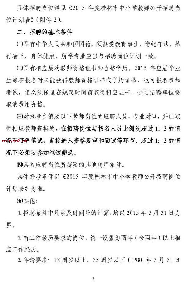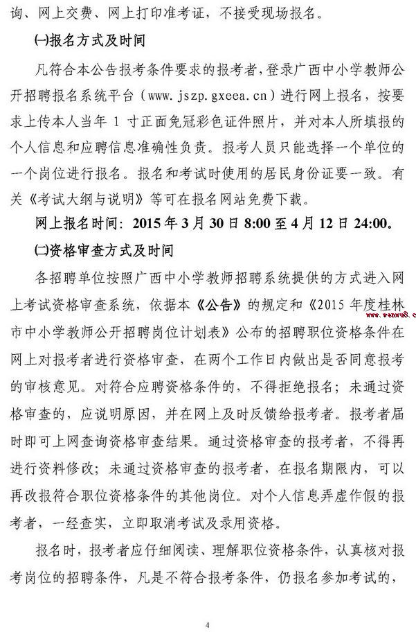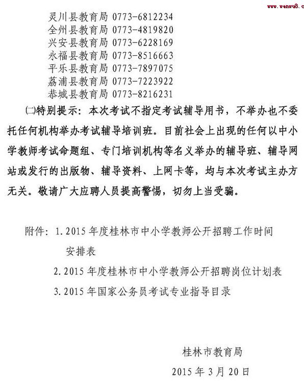 2015年度桂林市中小學(xué)教師公開招聘工作時(shí)間安排表