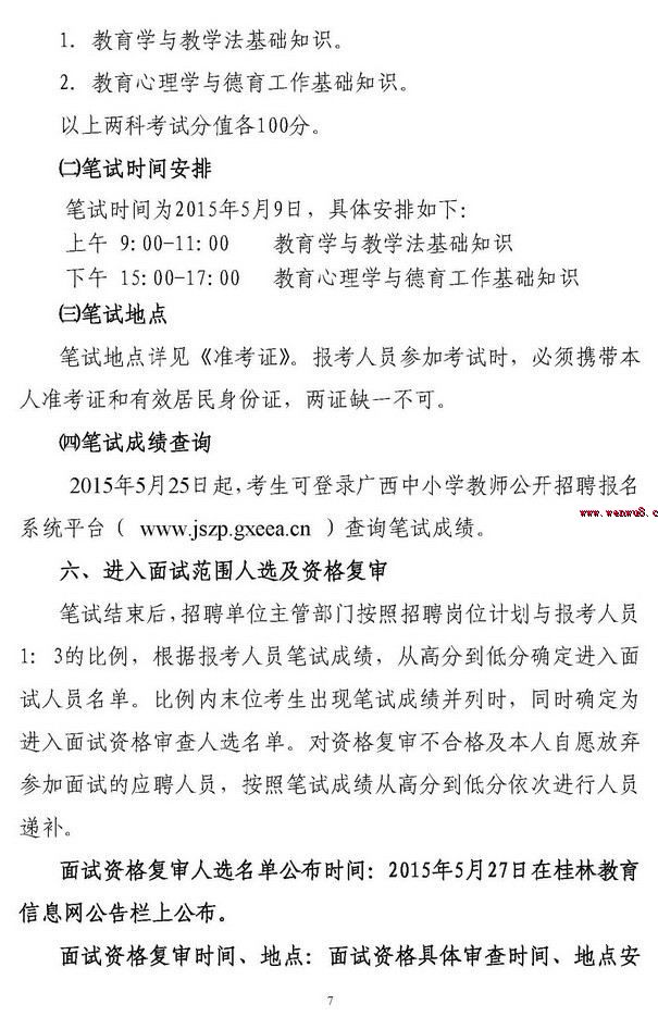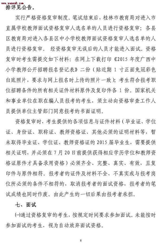 | 8 | 面試資格復(fù)審 | 另行通知 | 桂林市教育局、各縣區(qū)教育局 |