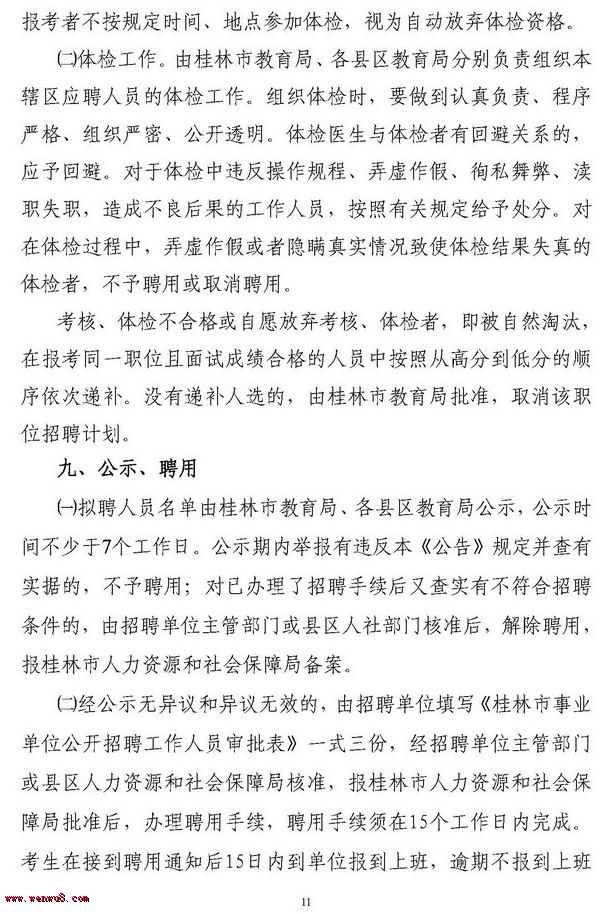 | 12 | 考核、體檢、公示 | 另行通知 | 桂林市及各縣區(qū)教育局、人力資源和社會(huì)保障局 |