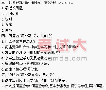 1.小學(xué)教育心理學(xué)所研究的對(duì)象是小學(xué)教育中( )