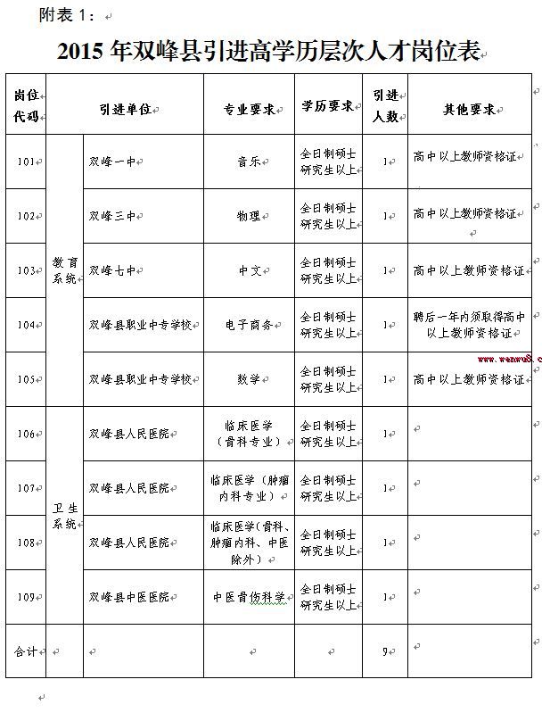 2015年全縣共引進高學歷層次人才9名(具體職位見附表1)。