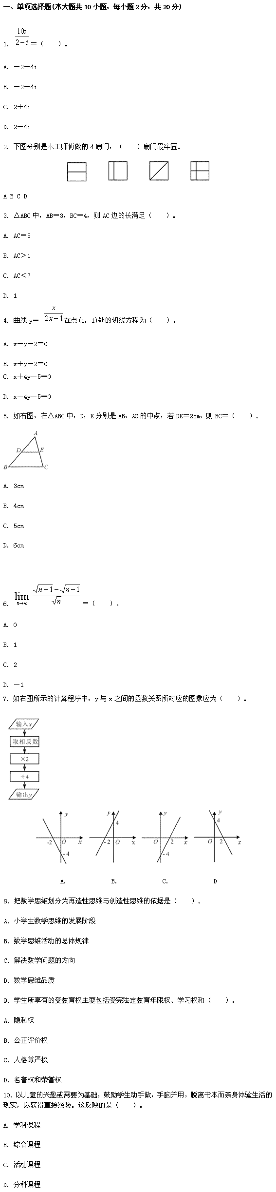 2012年特崗教師考試《小學數學》專家命題預測題(4)