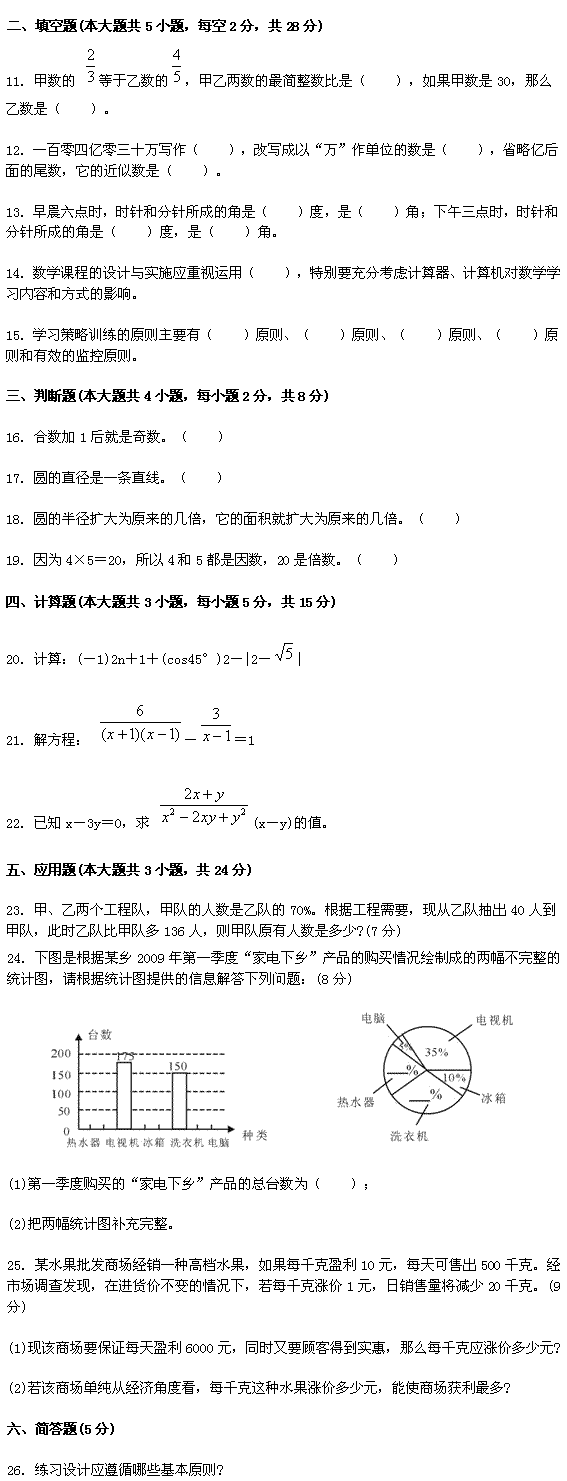 2012年特崗教師考試《小學數學》專家命題預測題(5)