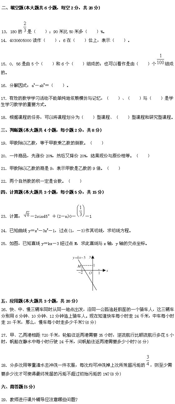 2012年特崗教師考試《小學(xué)數(shù)學(xué)》專家命題預(yù)測題(6)