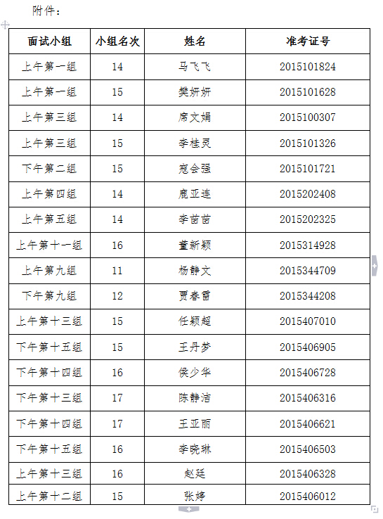 定州市2015年教育系統(tǒng)公開招聘經(jīng)過資格復(fù)審環(huán)節(jié),因?qū)彶槲赐ㄟ^和自愿放棄產(chǎn)生崗位空缺18個,根據(jù)市政府批準(zhǔn)的市人力資源和社會保障局、市教育局《關(guān)于市教育系統(tǒng)事業(yè)單位公開招聘工作人員實施方案》和市政府對《關(guān)于2015年教育系統(tǒng)公開招聘資格復(fù)審情況和人員遞補(bǔ)建議的請示》的批復(fù)意見,按照從各崗位面試分組人員中按筆試、面試的總成績由高到低排序,依次遞補(bǔ),若遞補(bǔ)人員出現(xiàn)總成績并列,依據(jù)筆試成績高低確定的原則,遞補(bǔ)馬飛飛等18人進(jìn)入資格復(fù)審(名單附后),現(xiàn)予以公告。請相關(guān)人員按照資格復(fù)審要求提供相關(guān)材料,交教育局5樓會議室進(jìn)行審核。