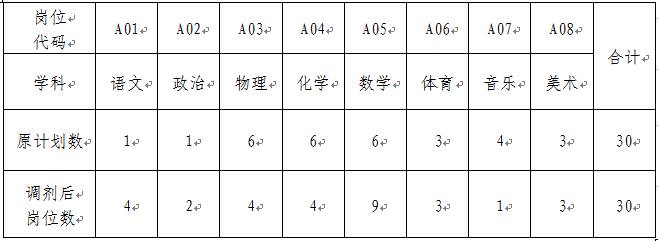 根據(jù)《竹山縣2015年公開招聘農(nóng)村初中教師公告》精神,由于農(nóng)村初中教師崗位部分學(xué)科報(bào)考人數(shù)未達(dá)到開考比例,經(jīng)研究,決定對(duì)部分學(xué)科崗位招聘計(jì)劃進(jìn)行調(diào)劑,調(diào)劑后具體崗位如下:
