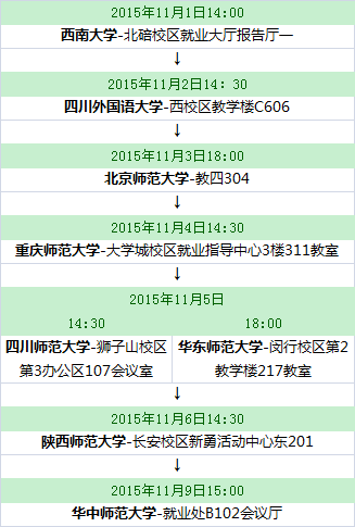 重慶德普外國(guó)語(yǔ)學(xué)校全國(guó)巡回校園招聘日程我校11月1日-11月10日期間將走訪成都、武漢、西安、北京、上海等地,展開(kāi)全國(guó)巡回校園招聘,具體日程安排如下: