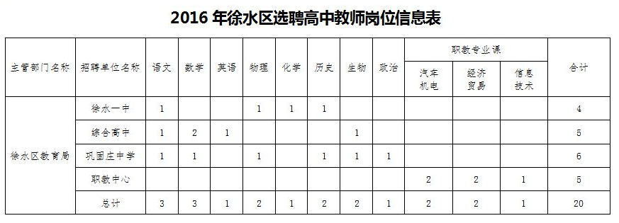 附表:2016年徐水區(qū)選聘高中教師崗位信息表