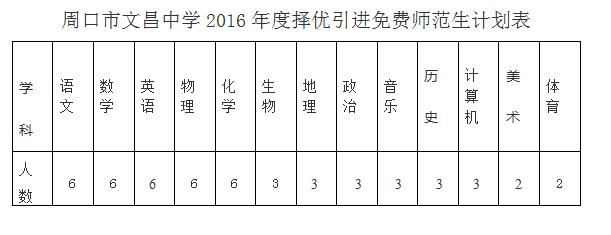 2016年周口市文昌中學(xué)招聘免費師范生的啟事