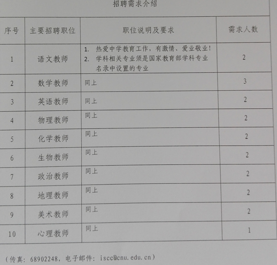 附件:北方交通大學(xué)附屬中學(xué)2016年畢業(yè)生招聘信息表