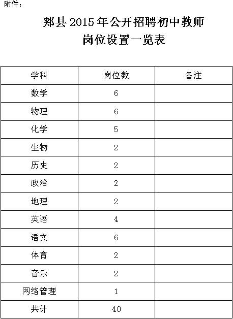 河南省平頂山市郟縣2015年初中教師招聘實施方案(40名) [薦]