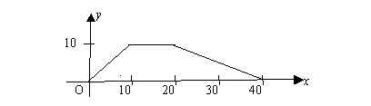 表示時(shí)間(單位:s),y表示速度(單位:m/s),開始計(jì)時(shí)后,物體從靜止?fàn)顟B(tài)開始做勻加速直線運(yùn)動(dòng),加速度為1m/s2,10s后做勻速運(yùn)動(dòng);20s后物體以-0.5m/s2的加速度做勻減速運(yùn)動(dòng)到40s末停下。