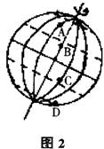 6.如果圖2中A點晝長為1.6小時,則晨昏線表示正確的圖是