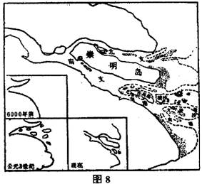 34.閱讀長(zhǎng)江三角洲附近發(fā)展階段示意圖(見(jiàn)圖8),回答下列問(wèn)題:(6分)