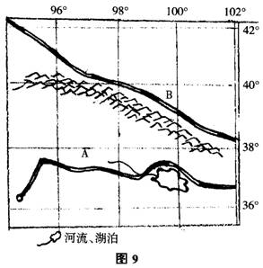 36.A、B表示山脈兩側(cè)的地理事物,讀圖9回答:(7分)