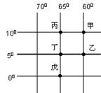 1. 右圖為局部經(jīng)緯網(wǎng)圖。某日?qǐng)D中甲、乙兩地同時(shí)日出,當(dāng)該日北京時(shí)間為0:00時(shí),太陽(yáng)高度相等的一組地點(diǎn)為: