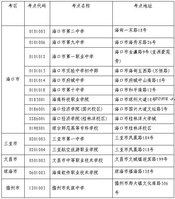 2012年上半年海南省高等教育自學(xué)考試各考點(diǎn)詳細(xì)地址如下: