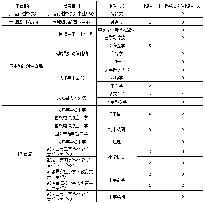 關(guān)于核減、取消和調(diào)整武城縣事業(yè)單位公開招聘工作人員崗位計劃的公告