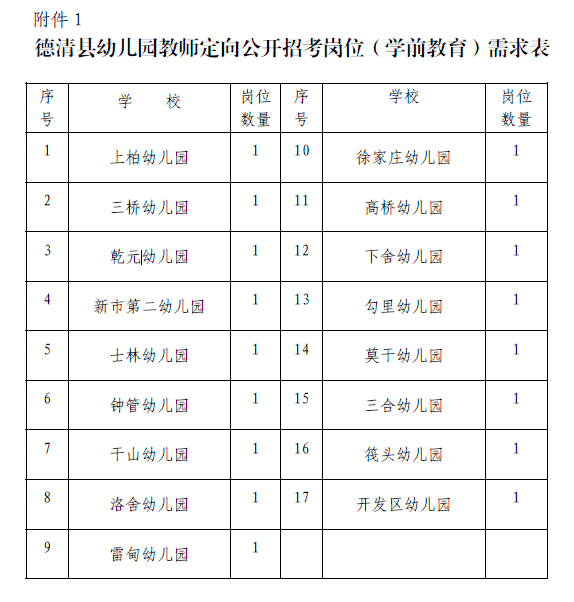 附件:1.德清縣幼兒園教師定向公開(kāi)招考崗位(學(xué)前教育)情況表