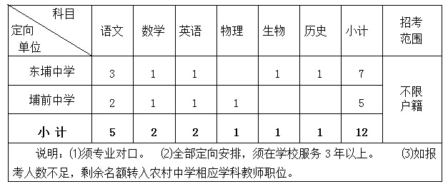 說(shuō)明:⑴全部定向安排。其中,A類教師職位安排到新興小學(xué)、上角小學(xué)等學(xué)校任教(“心理”科教師除外);B類和C類教師職位須在定向招聘單位服務(wù)5年以上! 、颇嘟鹦W(xué)和陂角小學(xué)的體育教師職位屬走教職位,聘用者需承擔(dān)周邊2-3所小學(xué)的體育科教學(xué)任務(wù)! | ||||||||||||