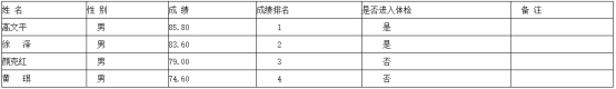 一、考生面試成績排名及進(jìn)入體檢人員名單