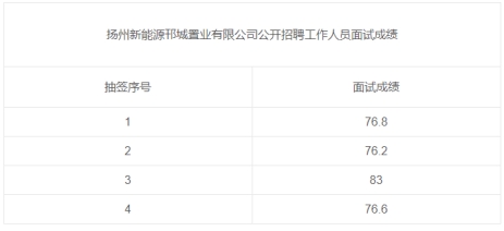 2023年揚州新能源邗城置業(yè)有限公司公開招聘工作人員面試成績 見下表