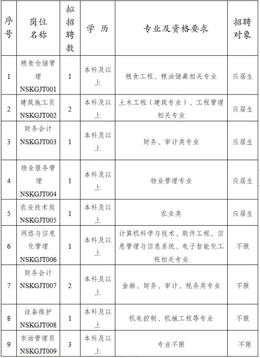 具有招聘崗位所需的資格條件及要求,詳見《連云港市農商控股集團有限公司2024年招聘公告》