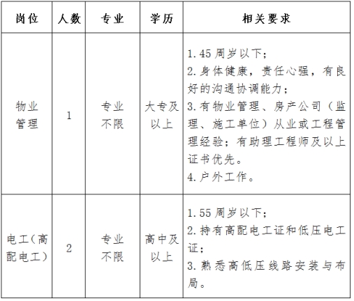 報(bào)名采取網(wǎng)上報(bào)名,網(wǎng)上報(bào)名人員須填寫(xiě)《招聘登記表》(見(jiàn)附件)、有效期內(nèi)本人身份證、學(xué)歷、學(xué)位證書(shū)、專(zhuān)業(yè)技術(shù)職務(wù)資格證書(shū)、近期一寸免冠彩照、有關(guān)工作經(jīng)歷證明等相關(guān)資料,于2023年11月29日下午17:30前壓縮發(fā)送至報(bào)名指定郵箱894401557@qq.com,在郵件主題中注明應(yīng)聘者姓名+應(yīng)聘崗位(例如“張三+物業(yè)管理崗位”)。