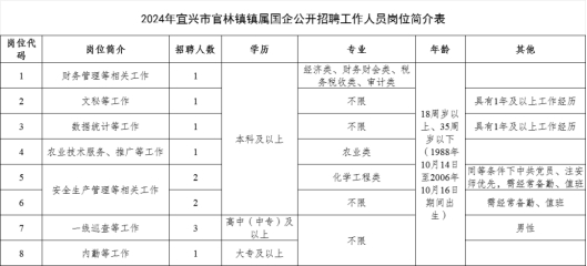 4、具備報(bào)考崗位所要求的其他條件,詳見附件1《2024年宜興市官林鎮(zhèn)鎮(zhèn)屬國企公開招聘工作人員崗位簡介表》。