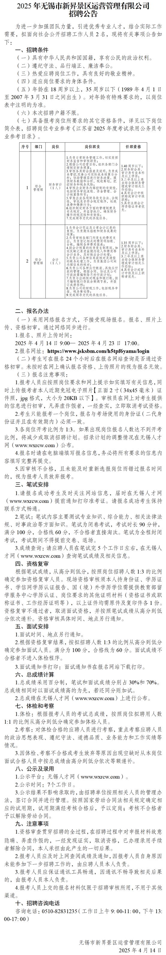 2025年無錫市新昇景區(qū)運(yùn)營(yíng)管理有限公司招聘公告