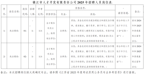 (七)招聘崗位、人數(shù)和所要求的學(xué)歷、專業(yè)等資格條件詳見《鎮(zhèn)江市人才開發(fā)有限責(zé)任公司2025年招聘人員崗位表》(附件1,以下簡稱《崗位表》)。