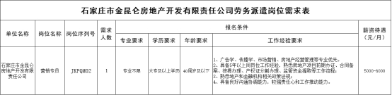 根據(jù)工作需要,金昆侖公司特委托石家莊市國經(jīng)人力資源管理有限公司面向社會公開招聘勞務(wù)派遣制人員1名,F(xiàn)將具體招聘流程設(shè)定如下: