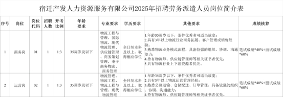 宿遷產(chǎn)發(fā)人力資源服務(wù)有限公司2025年招聘勞務(wù)派遣人員崗位簡介表