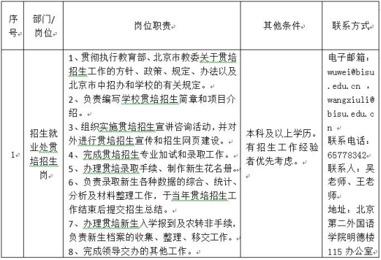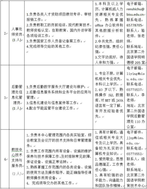 北京第二外國語學(xué)院非事業(yè)編制人員招聘公告