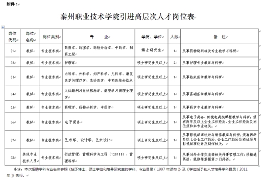 附件:1.泰州職業(yè)技術(shù)學(xué)院引進(jìn)高層次人才崗位表