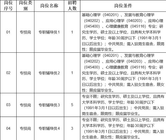 2.以上崗位條件中的學(xué)科專業(yè)按照教育部印發(fā)的《研究生學(xué)科專業(yè)目錄》、《專業(yè)學(xué)位授予和人才培養(yǎng)目錄》設(shè)置,專業(yè)名稱后括號(hào)中的數(shù)字為學(xué)科專業(yè)代碼;