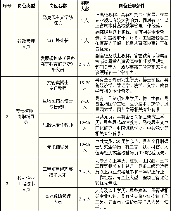 (一)馬克思主義學(xué)院院長、審計處處長、發(fā)展規(guī)劃處(民辦高等教育研究所)研究員具體待遇面議。
