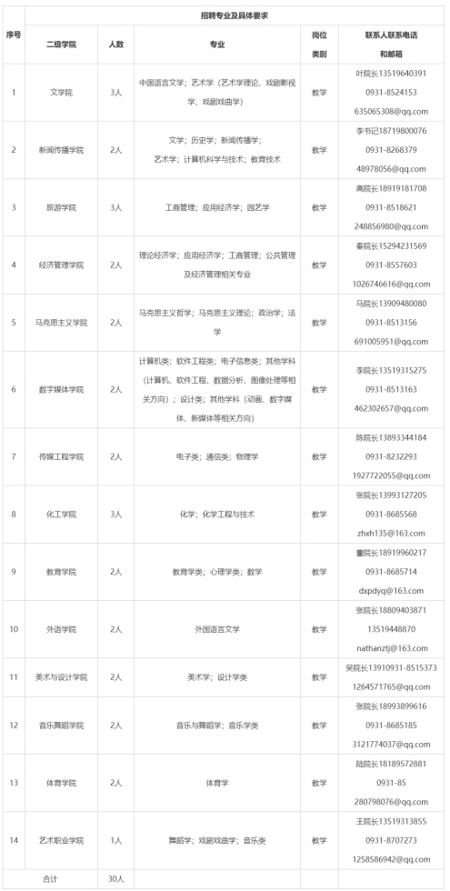 學(xué)校人事處電話:0931-8685665