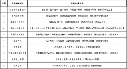 畢業(yè)專業(yè)須符合我校9個特色專業(yè)群及教育學院所招聘專業(yè)要求,見下表。