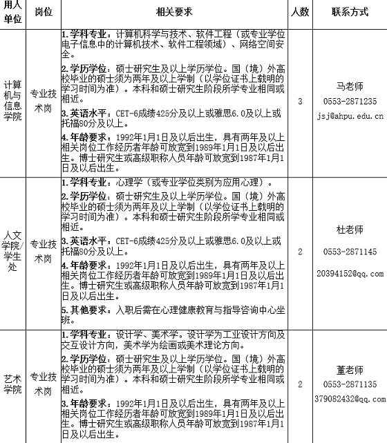 (四)具體崗位計(jì)劃及相關(guān)要求見下表: