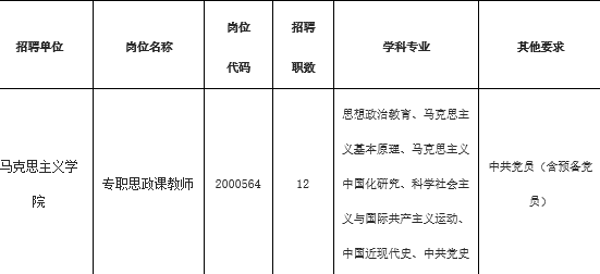 本次專職思政課教師招聘計劃12人,全部納入學校正式事業(yè)編制,具體招聘計劃和要求如下: