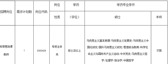 本次專職思政課教師招聘計劃為7人,全部納入學(xué)校正式事業(yè)編制,具體崗位計劃如下: