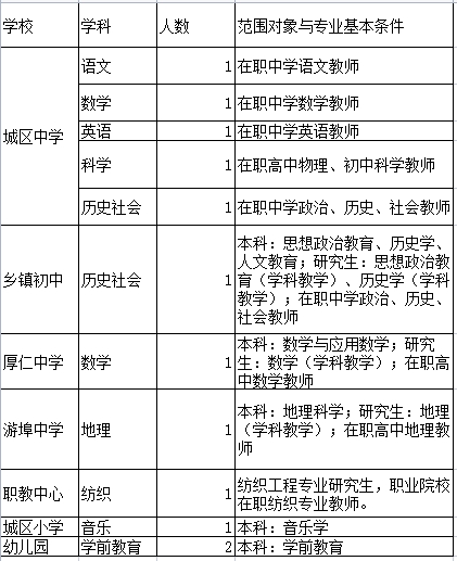 (二)在職教師,專業(yè)對口,本科及以上學(xué)歷,具有相應(yīng)教師資格證,年齡45周歲以內(nèi),并符合以下條件之一: