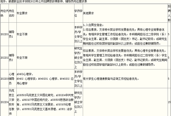 3.專業(yè)和其他要求:詳見附件《順德職業(yè)技術(shù)學(xué)院2022年第一批校聘人員招聘崗位需求表》。